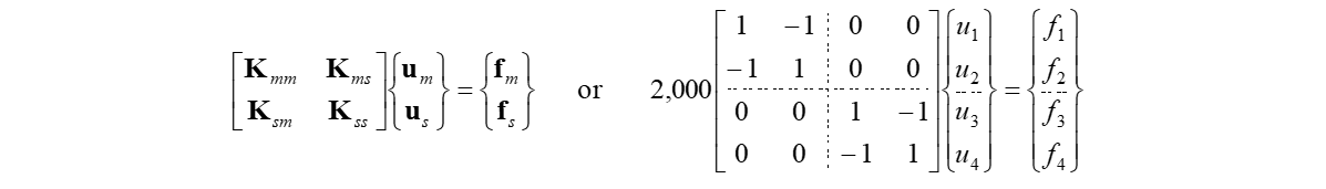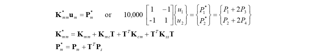 경계조건을 부과하면 \(\small u_{2} = 0.0002\), \(\small P_{1} = - 2\)로 계산된다;