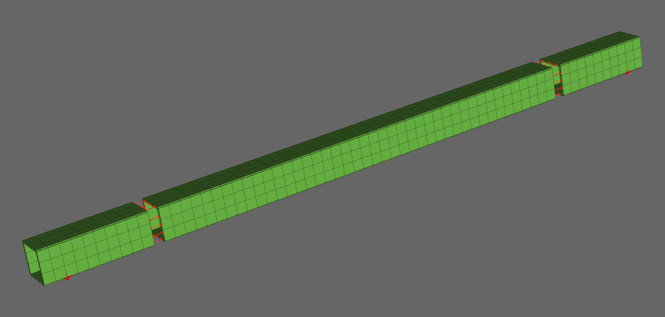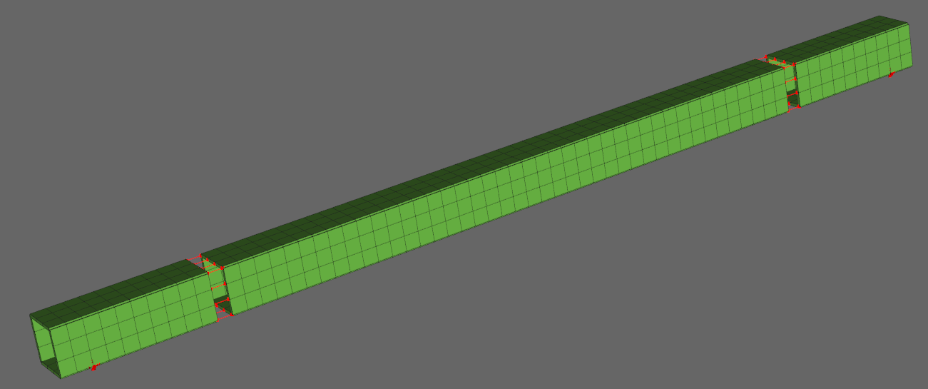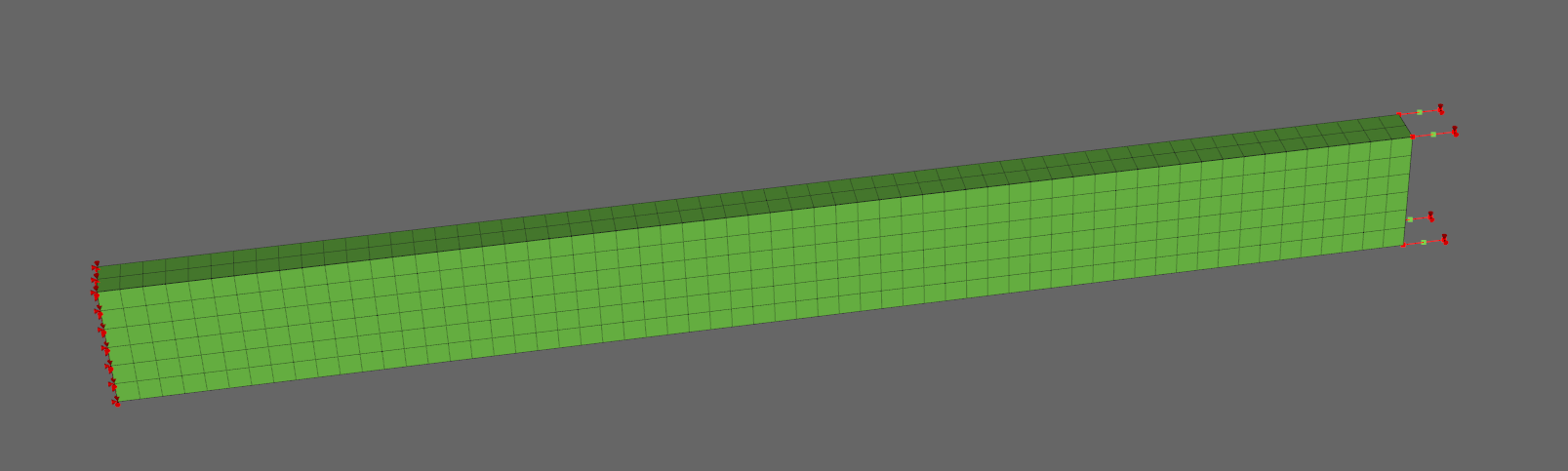 Spring 구속조건을 검증하기 위해 그림과 같이 캔틸레버 끝 단에 스프링을 요소로서, 구속조건으로서 연결하고 그 해를 비교하였다.
