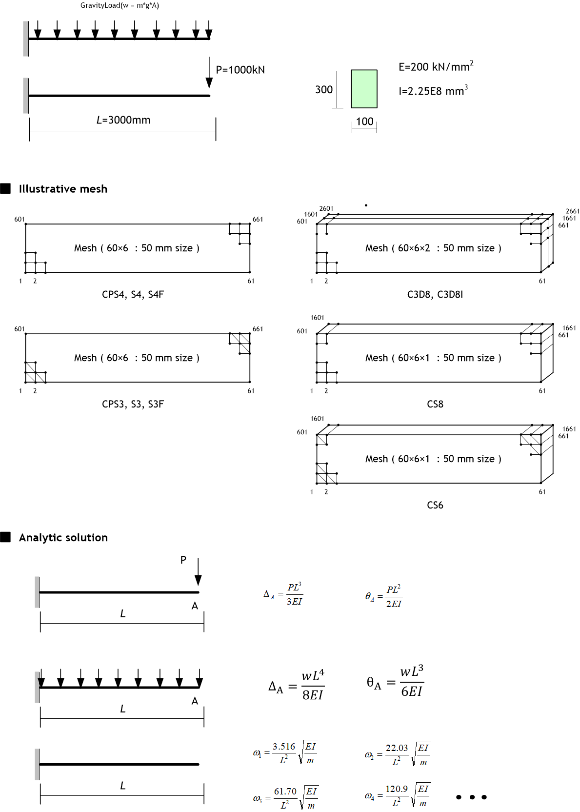 캔틸러버에 대한 정적해석 및 고유치 해석을 통해 메쉬 크기에 따라 검증하였다.